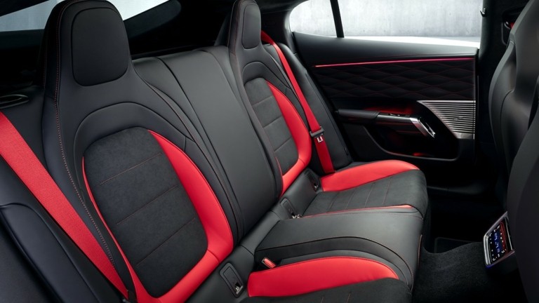 Η καμπίνα συνδυάζει σπορ χαρακτήρα και άνεση gran turismo. Τα μπροστινά καθίσματα προσφέρουν έντονη πλευρική στήριξη, ενώ προαιρετικά διατίθενται καθίσματα AMG Performance με ενσωματωμένα προσκέφαλα. Πίσω, δύο ανεξάρτητα καθίσματα εξασφαλίζουν υψηλό επίπεδο άνεσης για μεγάλες αποστάσεις, με δυνατότητα επιλογής τριθέσιου πίσω καθίσματος.