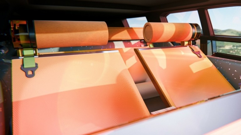 Το πρωτότυπο, με το τετραγωνισμένο αμάξωμα, την υπερυψωμένη οροφή και την ενσωματωμένη σκηνή, δείχνει έτοιμο για περιπέτειες και κάμπινγκ. Ωστόσο, αυτό που τραβά τα βλέμματα του ευρωπαϊκού κοινού είναι οι λεπτομέρειες στα φώτα του που παραπέμπουν άμεσα στο νέο Grande Panda.