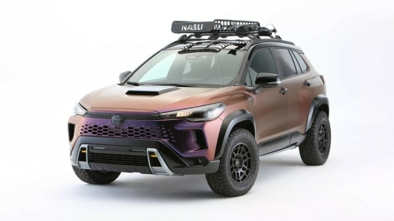 Το αποτέλεσμα είναι μία Corolla Cross διαφορετική απ’ ό,τι έχουμε ξαναδεί. Έχει ανασχεδιασμένο αμάξωμα, με φουσκωμένα φτερά, νέες ποδιές, σκαλοπάτια, πρόσθετα φώτα LED και μια μη λειτουργική εισαγωγή αέρα στο καπό.