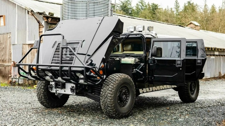 Το αυτοκίνητο διατηρείται σχεδόν όπως το άφησε: με πολυτελές εσωτερικό σε μπεζ δέρμα, ξύλινες επενδύσεις, προβολείς οροφής και εμπρός εργάτη. Παρά τη χλιδή, κάτω από το αμάξωμα παραμένει το ίδιο «στρατιωτικό θηρίο» που βασίζεται στο Humvee του αμερικανικού στρατού.