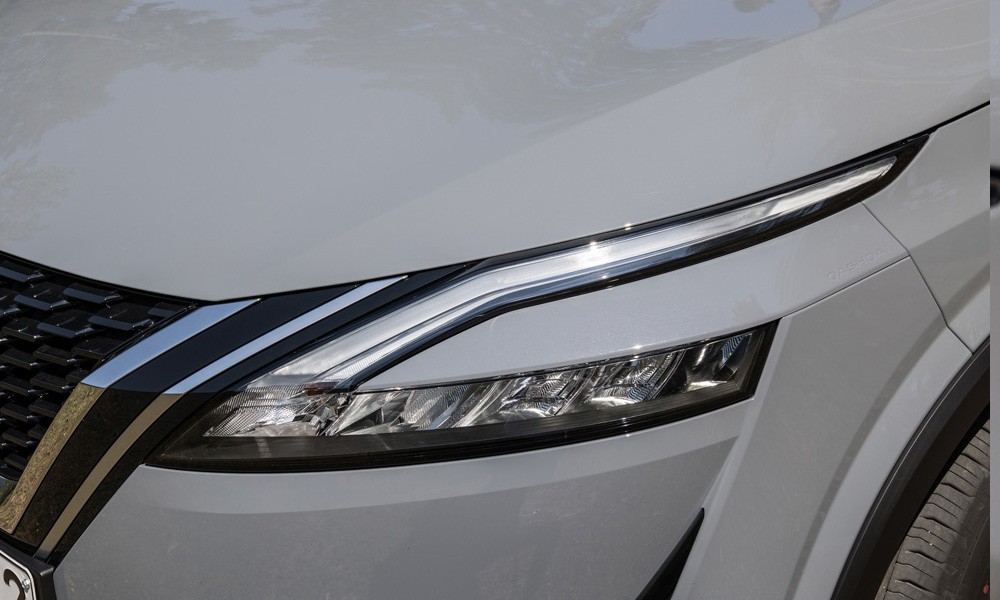 Οι καμπύλες και οι απόηχοι μιας old fashioned ιαπωνικής αισθητικής ανήκουν στο παρελθόν, με τις ακμές και τις γωνίες να δίνουν πλέον το στίγμα του φρέσκου και του σχεδιαστικά επίκαιρου. Το εμπρός μέρος, αν και άμεσα αναγνωρίσιμο ως Nissan με τη γνωστή πλέον μάσκα V-Motion, έχει δεχθεί και αυτό ένα σημαντικό makeover, με νέους. εντυπωσιακούς προβολείς και LED ημέρας καθώς και μερικές πολύ ενδιαφέρουσες λεπτομέρειες, όπως για παράδειγμα οι κάθετες εισαγωγές αέρα που προσδίδουν δυναμισμό και κύρος. Οι πιο χαρακτηριστικές επεμβάσεις πάντως που θυμίζουν (και δεν αντιγράφουν) ακριβές premium προτάσεις, είναι κατά κύριο λόγο στο πλάι και στο πίσω μέρος, εκεί που το νέο Qashqai δείχνει τουλάχιστον μια κατηγορία πάνω από το προηγούμενο, τόσο σε αισθητική υπόσταση όσο και σε διαστάσεις.