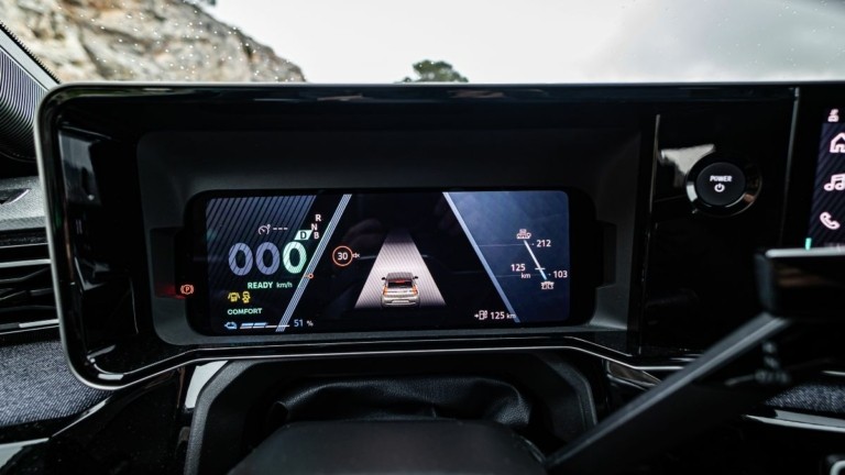 Η μεγάλη μπαταρία προσφέρει 410 χλμ. αυτονομίας βάσει του πρότυπου WLTP. Στην πραγματικότητα υπολογίστε περίπου 370-380 χλμ. εάν κινείστε στην πόλη και πέριξ, καθώς η διαχείριση ενέργειας -ειδικά στην επιλογή «B» όπου η ανάκτηση είναι ισχυρή- είναι από τις κορυφαίες στην κατηγορία. Σημαντικό ρόλο σε αυτό παίζει και η παρουσία αντλίας θερμότητας.